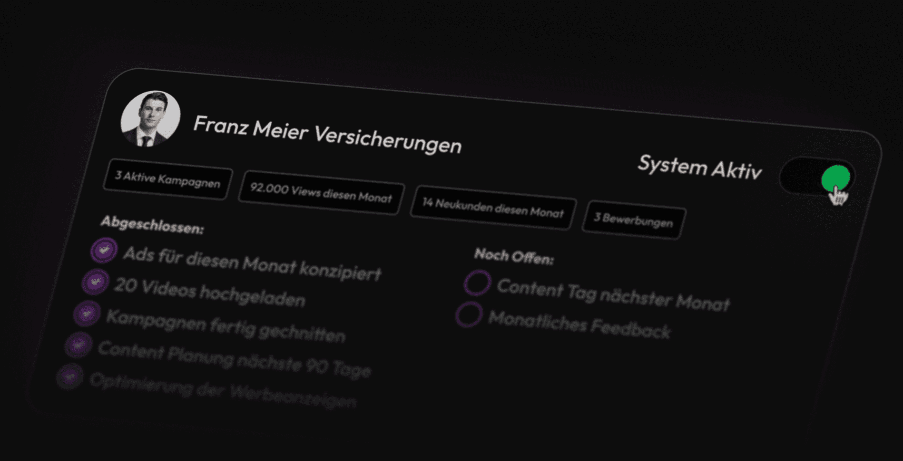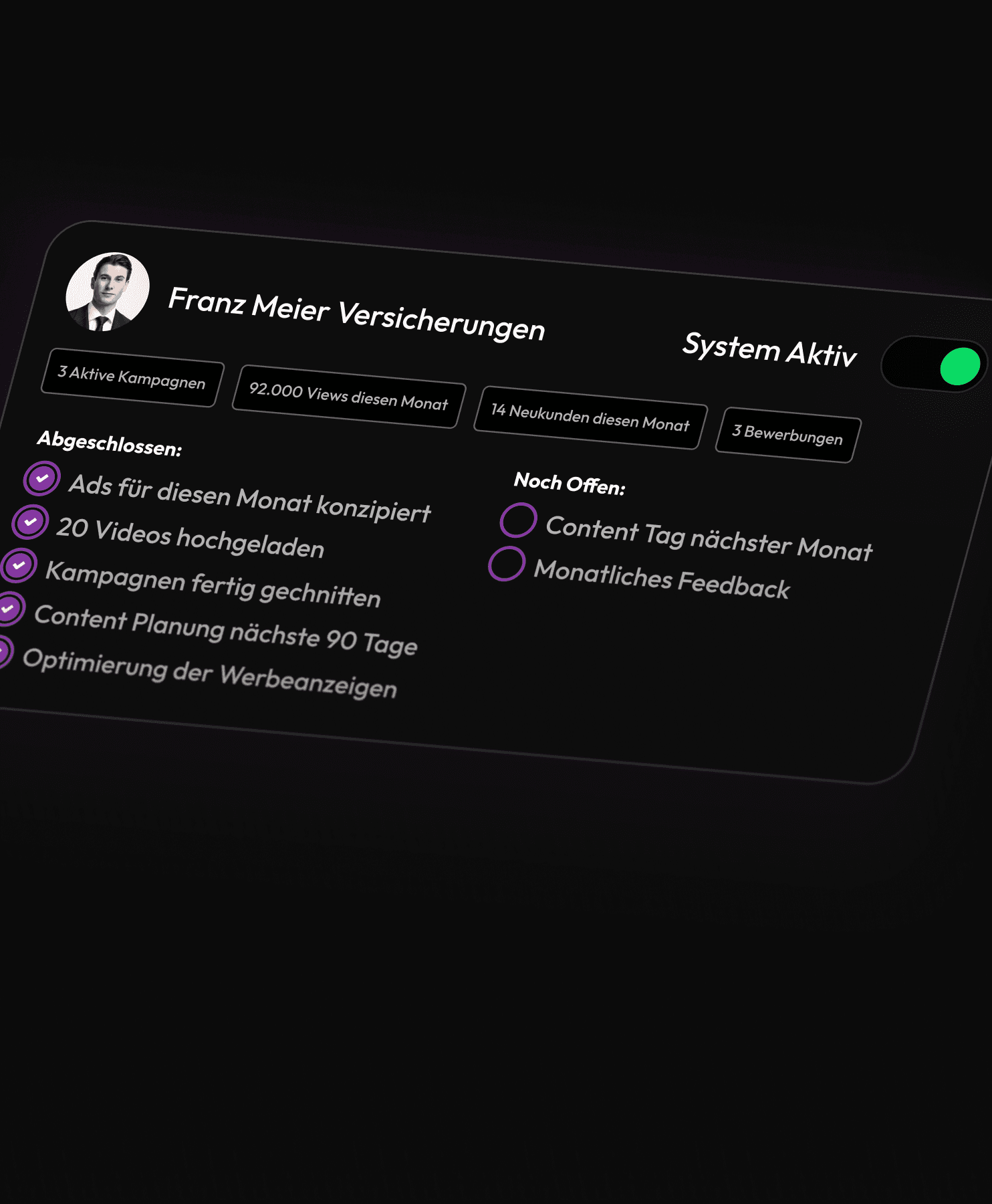 Dein Marketing sollte antreiben. Nicht Bremsen. Wir bauen ein System, das Planbar neue Kunden und passende Mitarbeiter bringt.