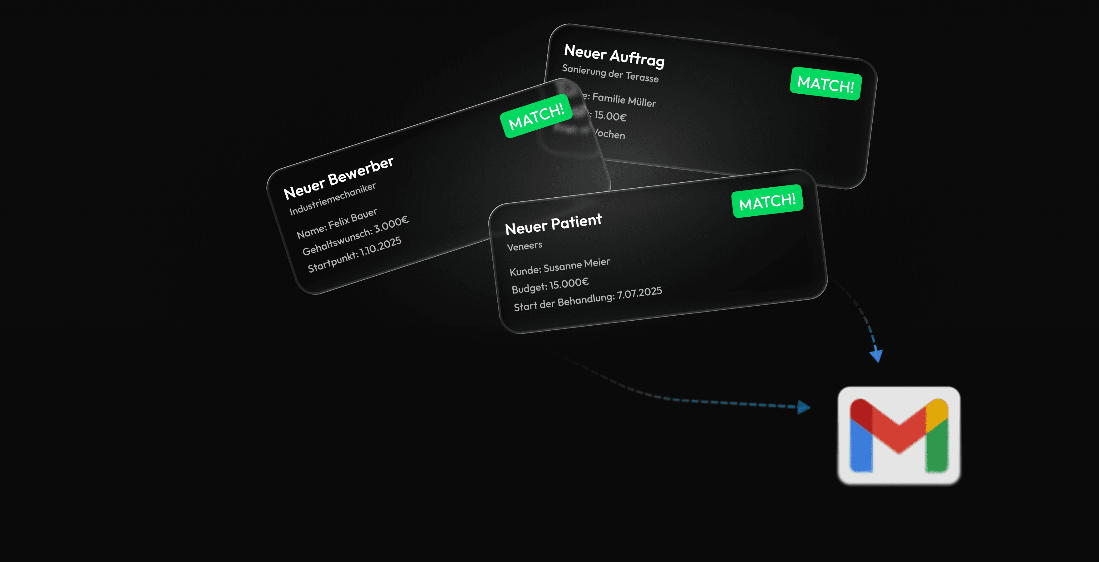 Erhalte automatisch Anfragen von Wunschkunden und echte Bewerbungen von Fachkräften.